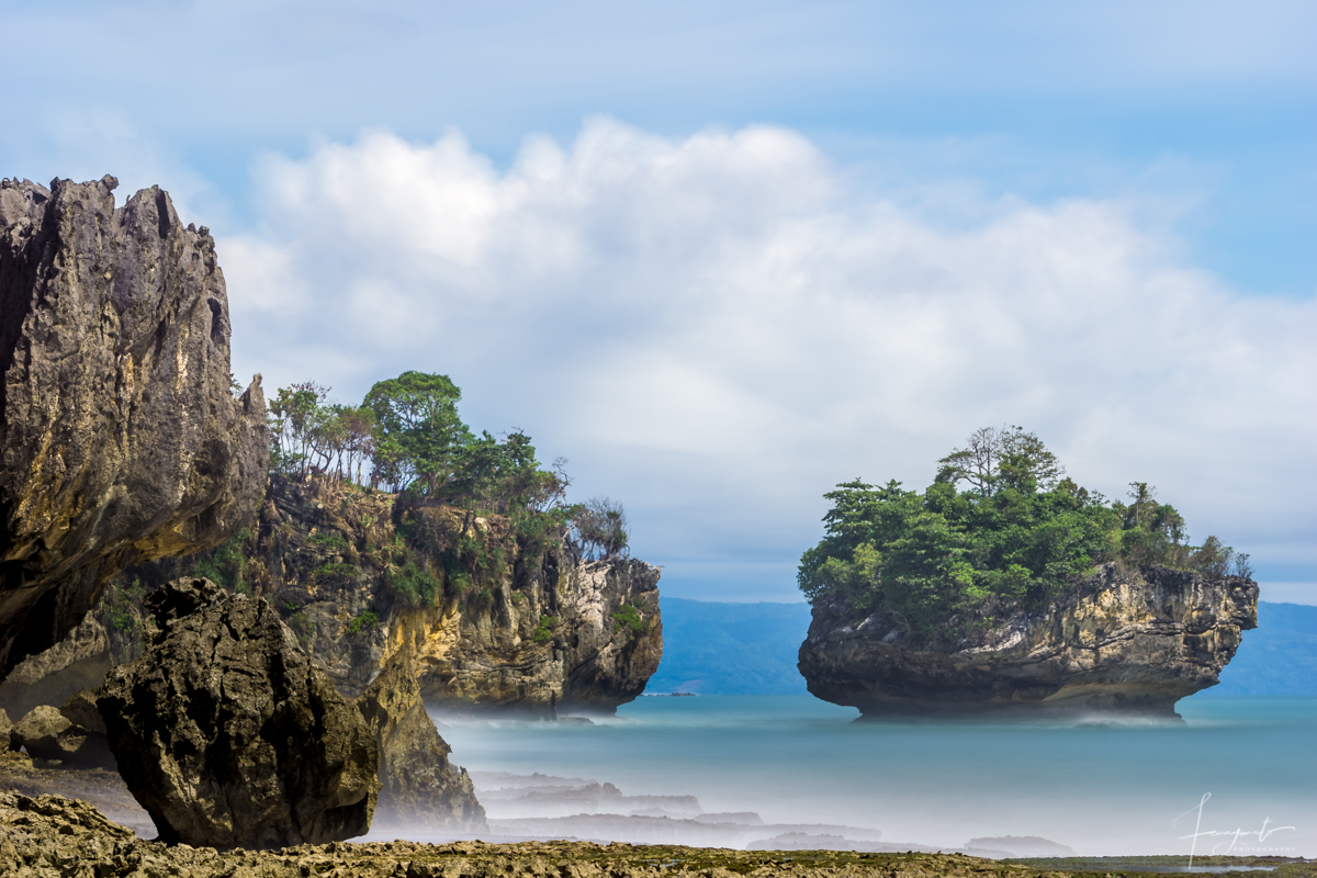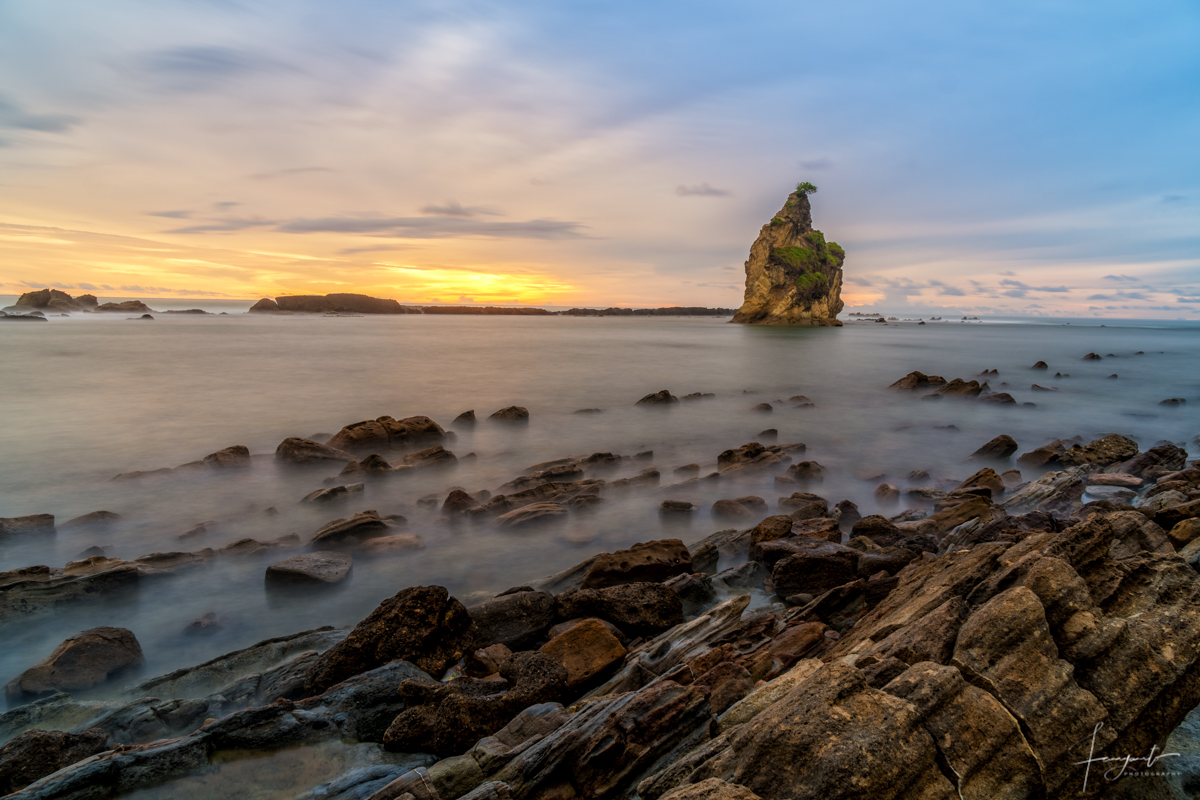 Tips: saya menggunakan teknik slow speed / long exposure untuk mendapatkan effek air yang halus, bisa di googling bagaimana cara menggunakan teknik itu, yang jelas kamu harus bawa tripod dan kadang butuh ND filter untuk bisa melakukan teknik slow speed atau long exposure di pantai 🙂