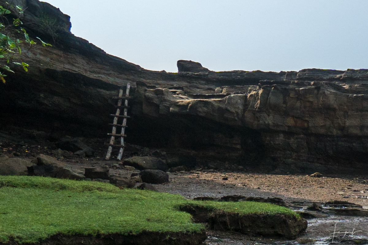Berjalan lah ke titik terjauh medekati bukit di karang taraje, kamu akan menemukan anak tangga seperti di foto, tangga nya hanya terbuat dari kayu sederhana, berhati hatilah saat naik dan turun. dan sekali lagi carilah guide lokal untuk menuju lokasi ini. karena mereka akan tau aman atau tidak nya, ombak lagi tinggi atau tidak, sudah waktu nya untuk kembali jika akan terjadi pasang.