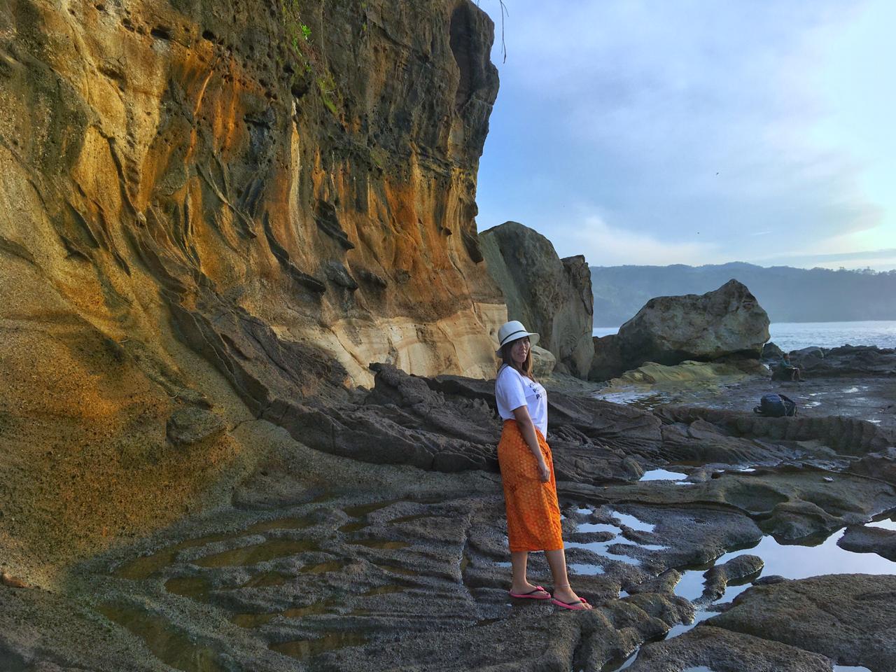 Foto di atas belakang saya ada jalur karang yang bisa di lalui, berjalanlah dengan hati hati, dan kamu akan menemukan banyak spot yang sangat menarik untuk menghiasi feed instagram kamu. oh ya saat ini jalan nya tidak semulus di foto itu ya, karena ada gempa terakir yang terjadi di lebak, lokasi nya tertimbun tanah, tetapi masih bisa di akses 🙂